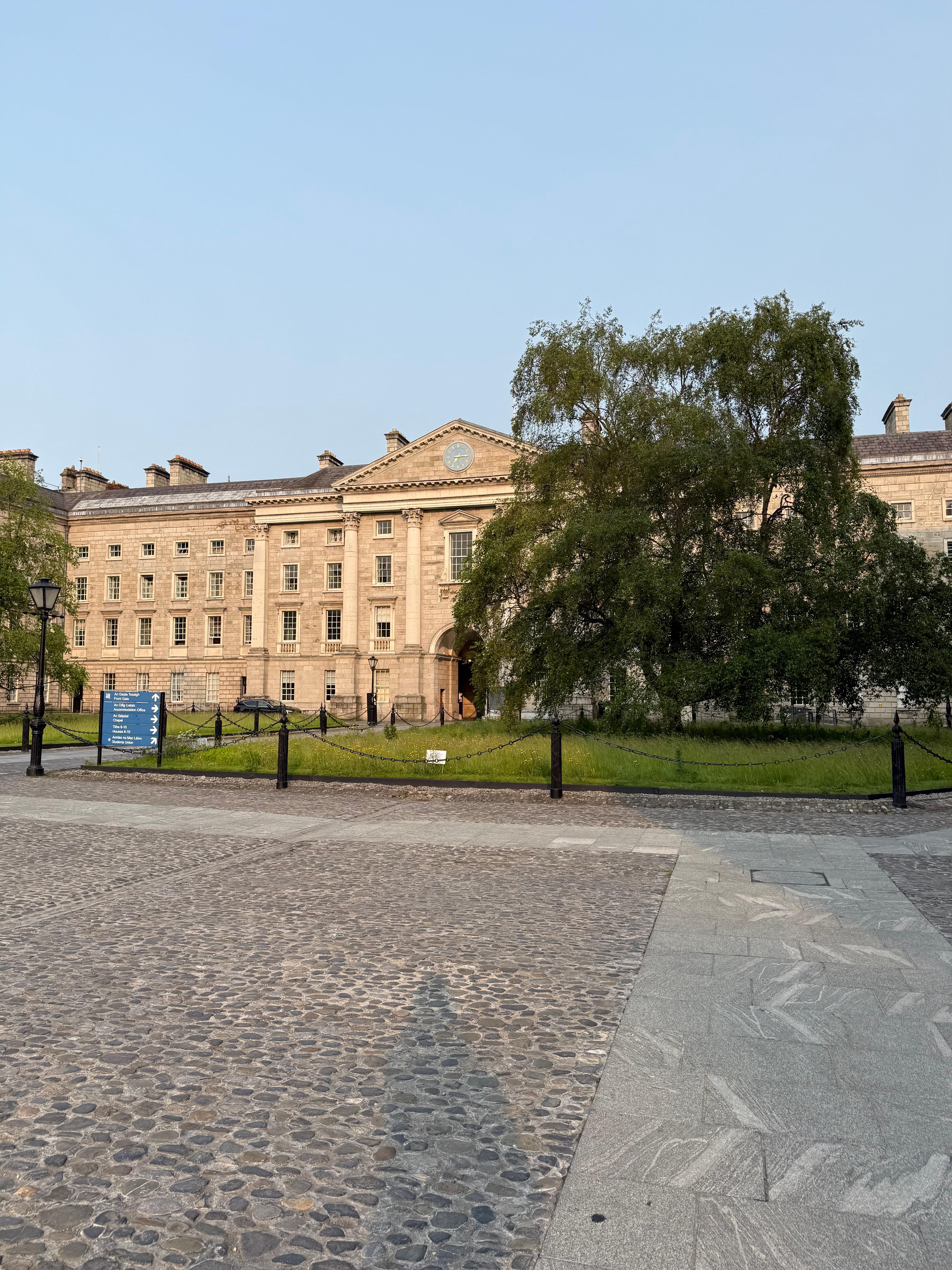 트리니티 칼리지 호텔에 머물기에 아침 일찍 학교 정원에 앉아 지난 날을 회상했다.