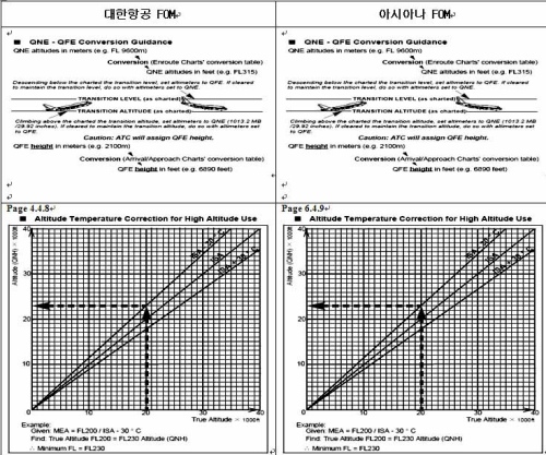 대한항공의 fom은 2004년 7월 초부터 2005년 10월까지 1년 3개월에 걸쳐 조종사 등 전문 인력 10명을 풀타임으로 투입해 국판(a4용지의 반) 크기 666페이지 분량으로 비행운영교범을 완성한 후 저작권 등록까지 마친 것으로, 운항규정에 포함된 것은 2006년 1월이다.