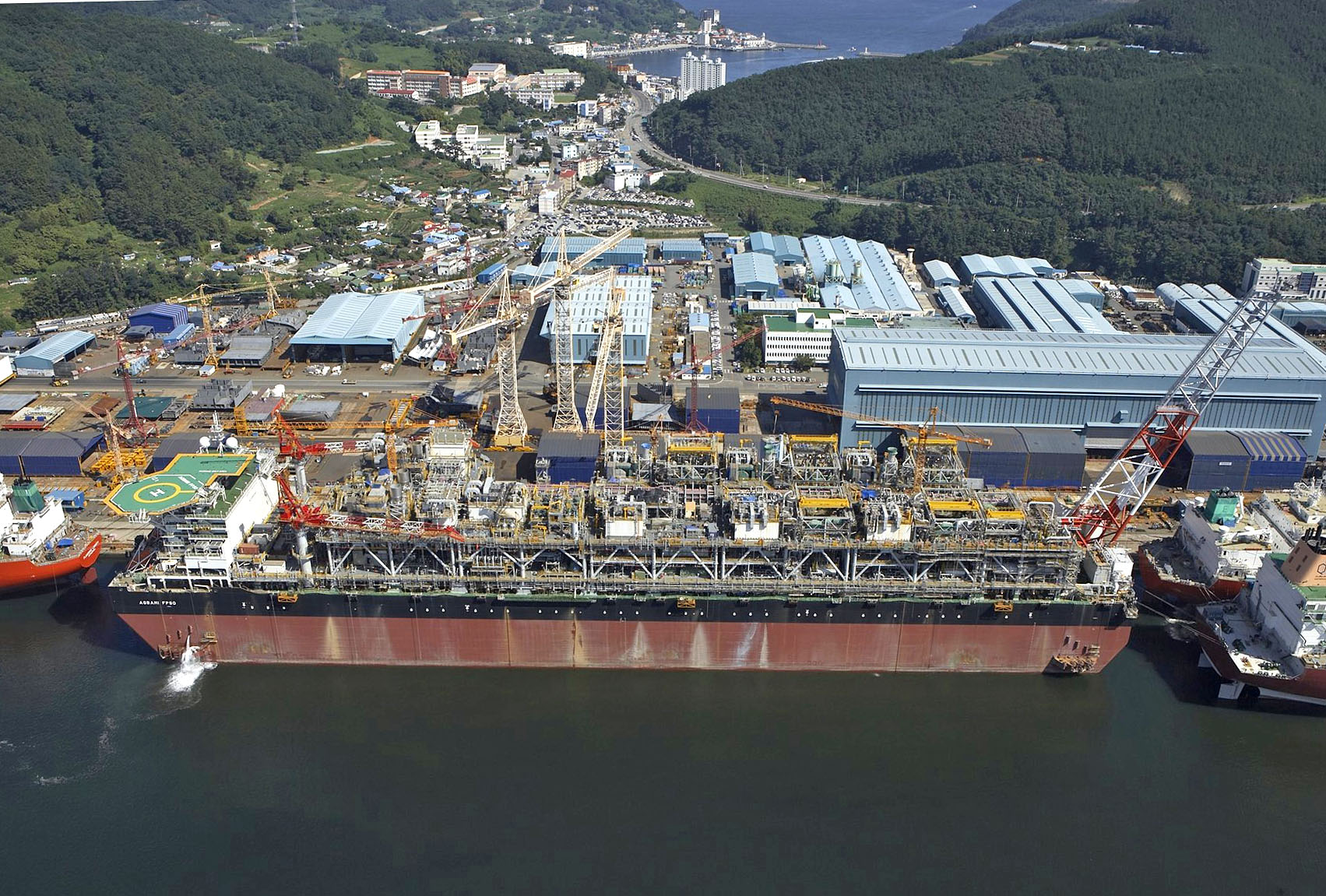 | ▲대우조선해양이 지난해 9월 인도한 세계 최대 규모의 해상 원유생산공장 '아그바미fpso'가 거제도 옥포조선소에 정박해 있는 모습. |
