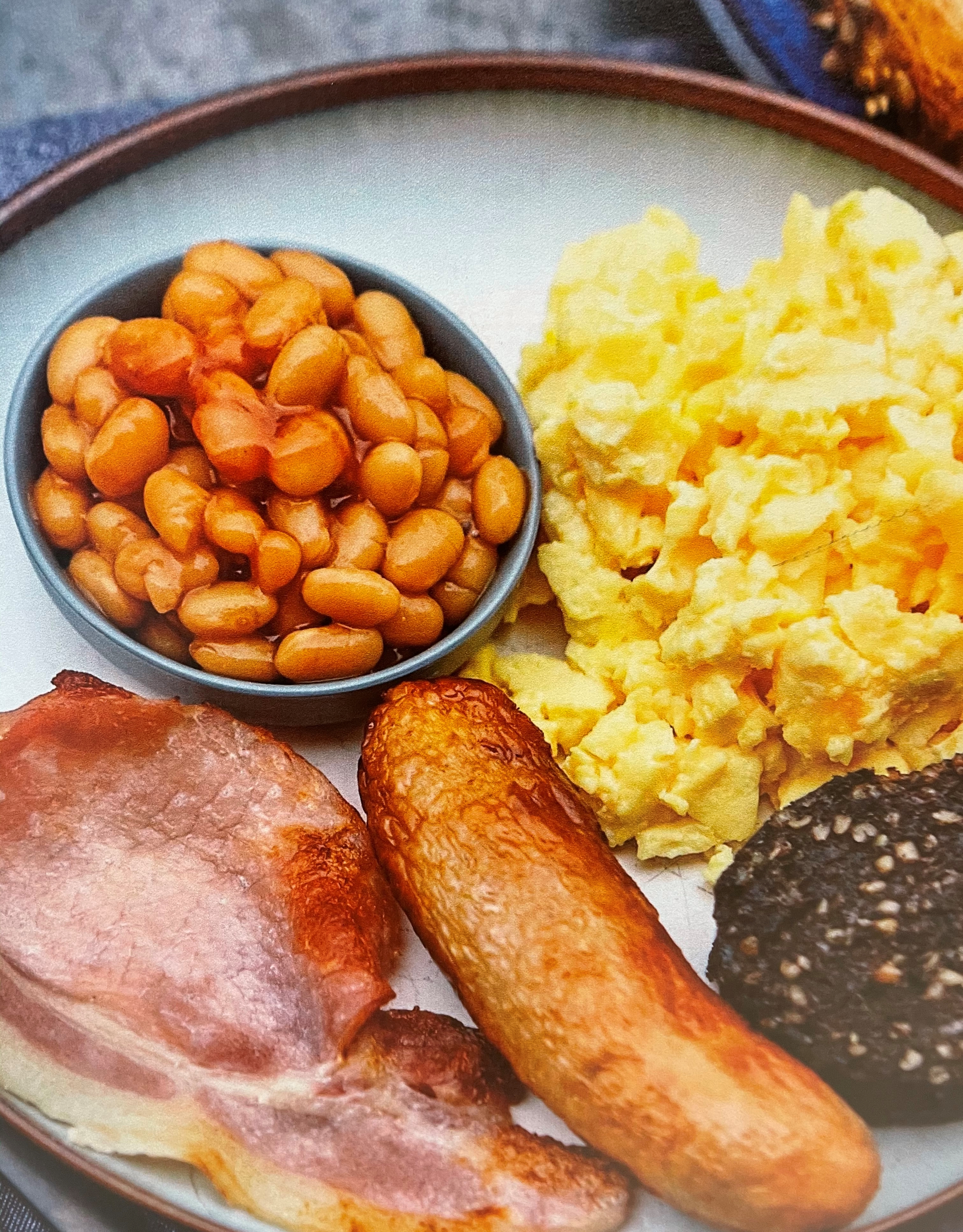 베이컨, 소시지, 버섯, 토마토, 달걀, 구운 콩, 블랙 푸딩, 토스트로 구성되어 있다는 점에서