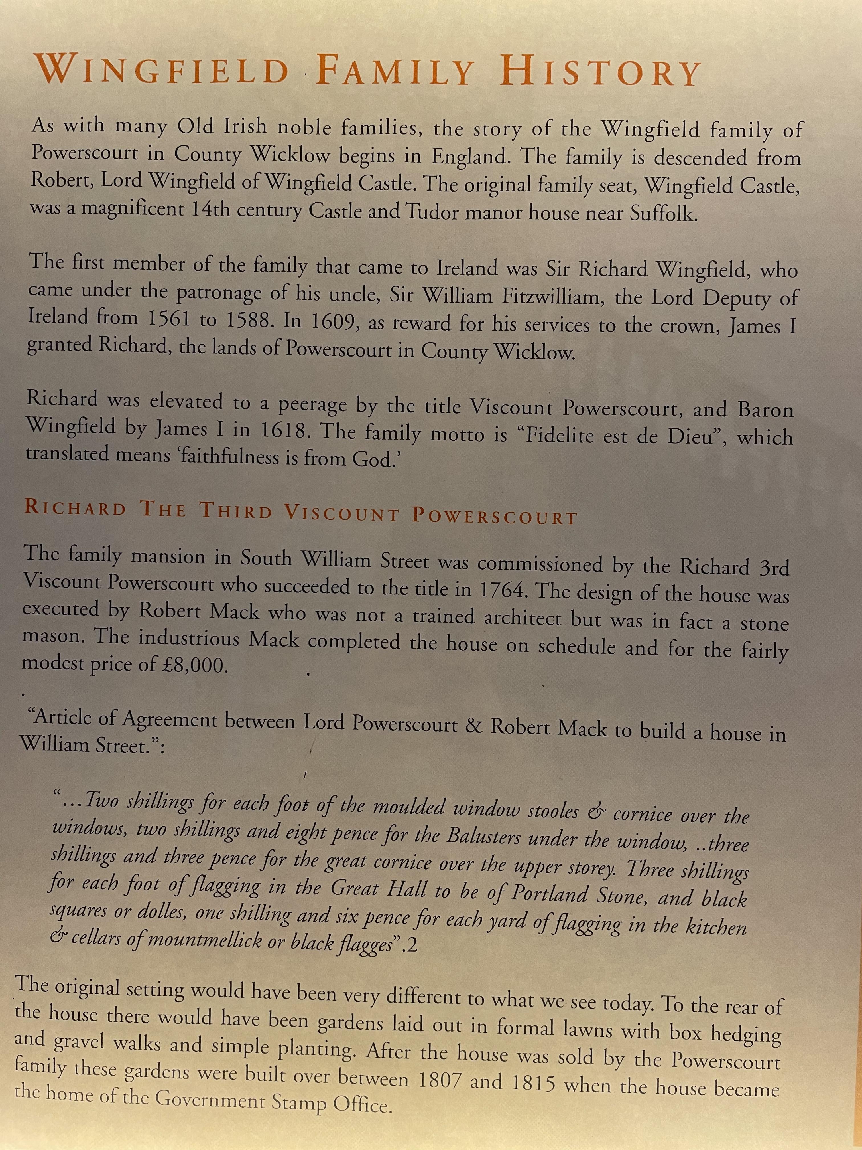 and grand house of Powerscourt in Enniskerry. I came across the Wingfield family