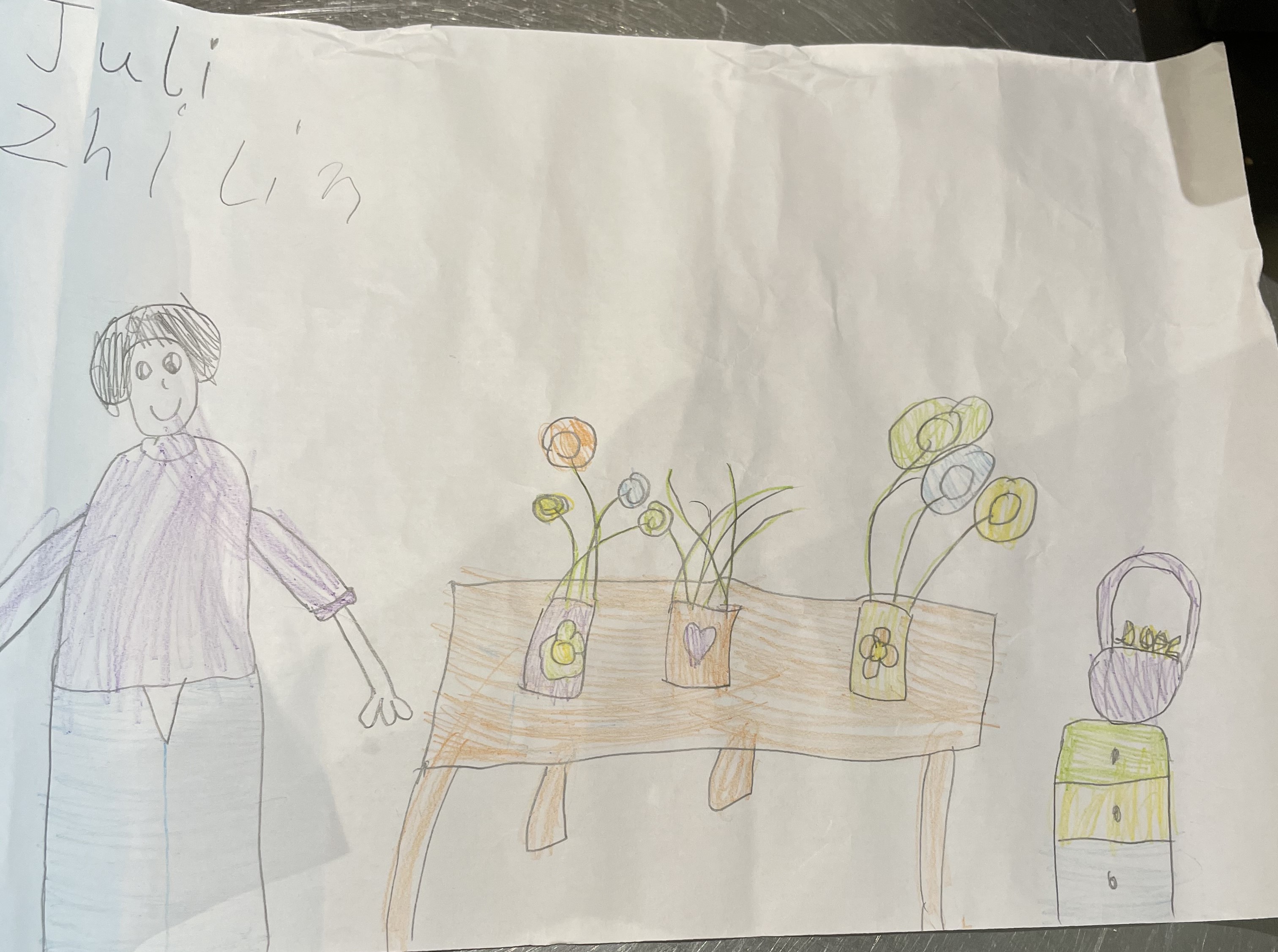 彼女は絵に私の名前を書いていて、それは私を描いたようです。
