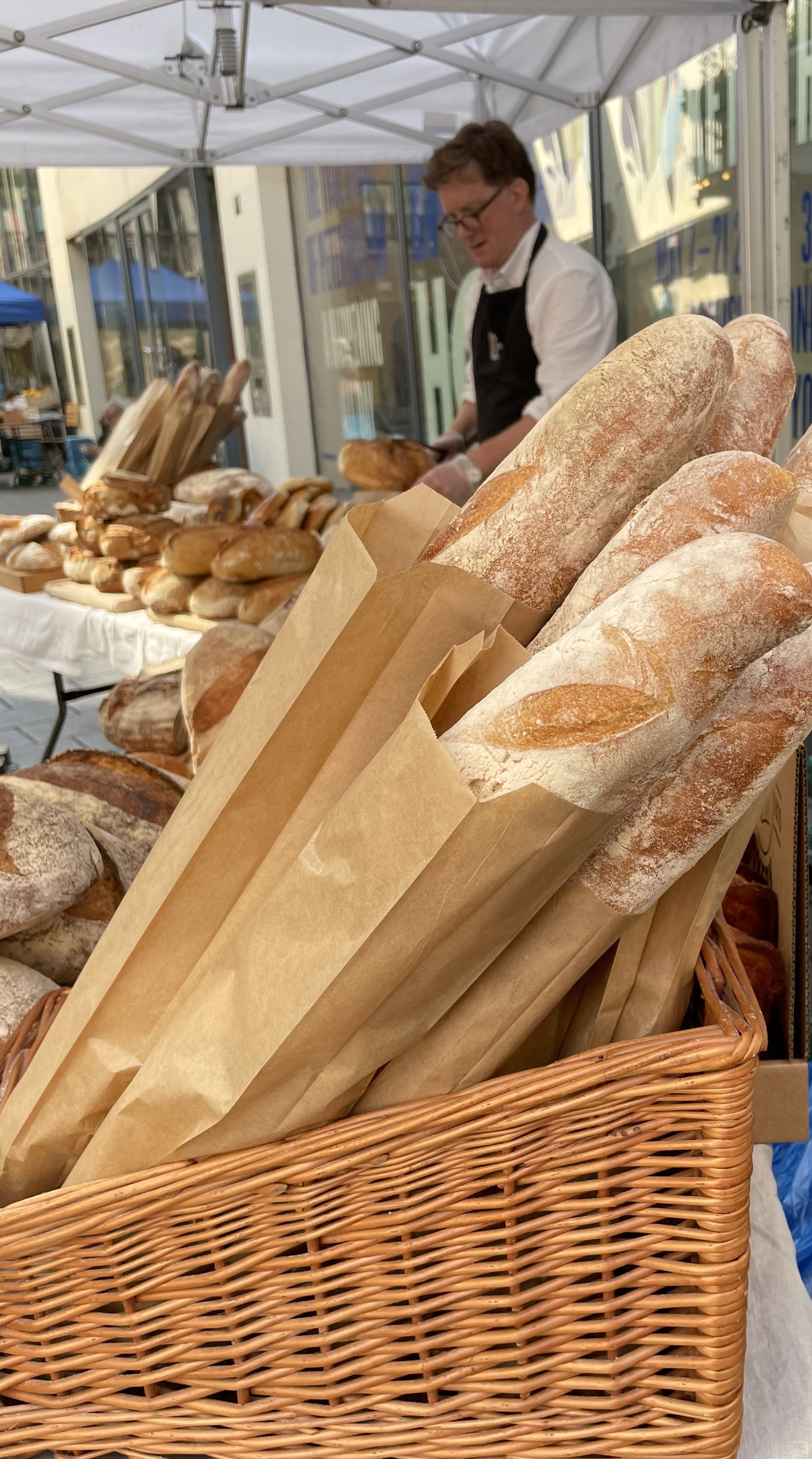 주말 장터는 야채, 과일, 빵들이 손님을 기다리지만