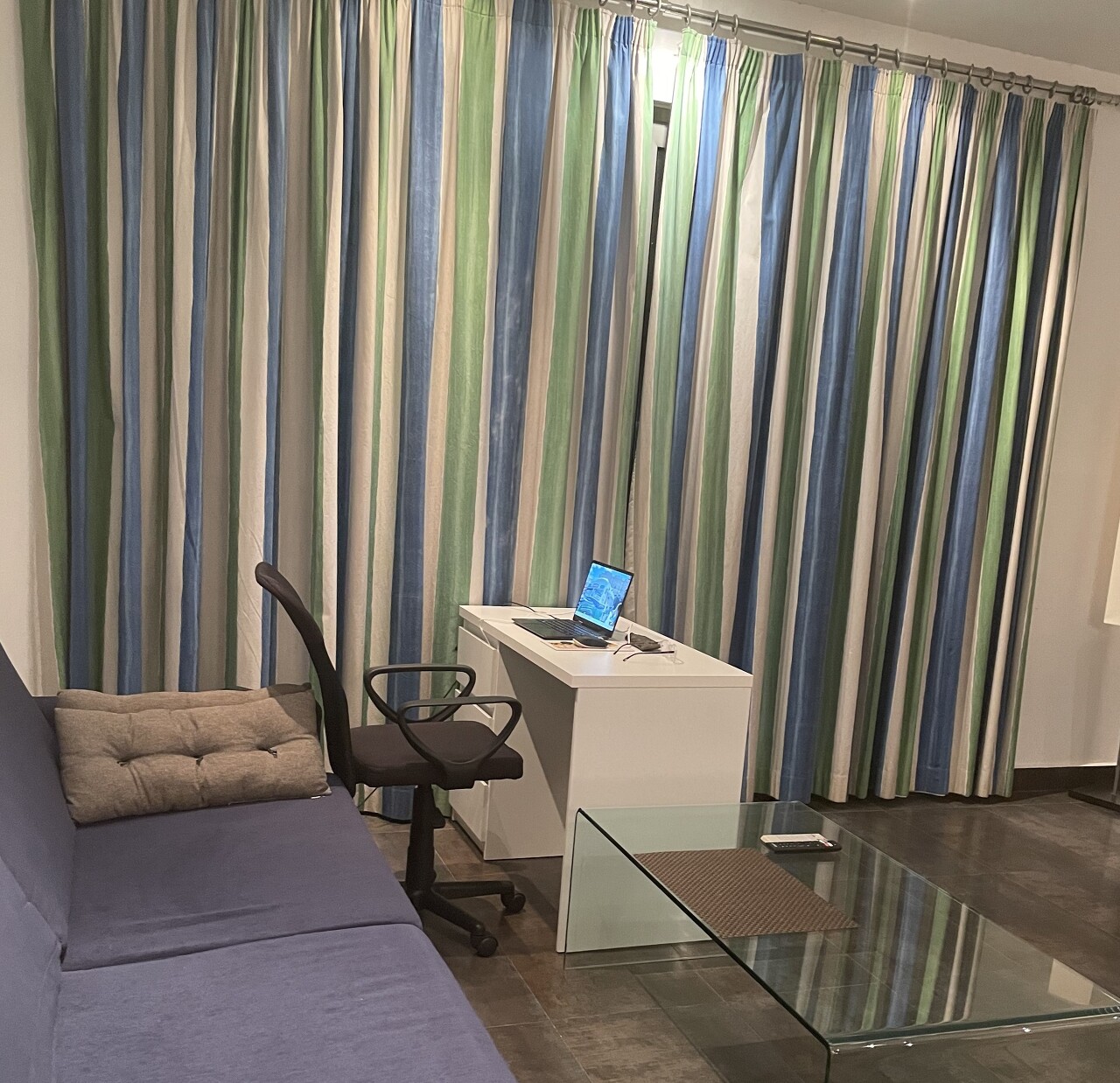 이러한 색은 그다지 좋아하지 않지만 이 아파트는 어쩔 수없다.