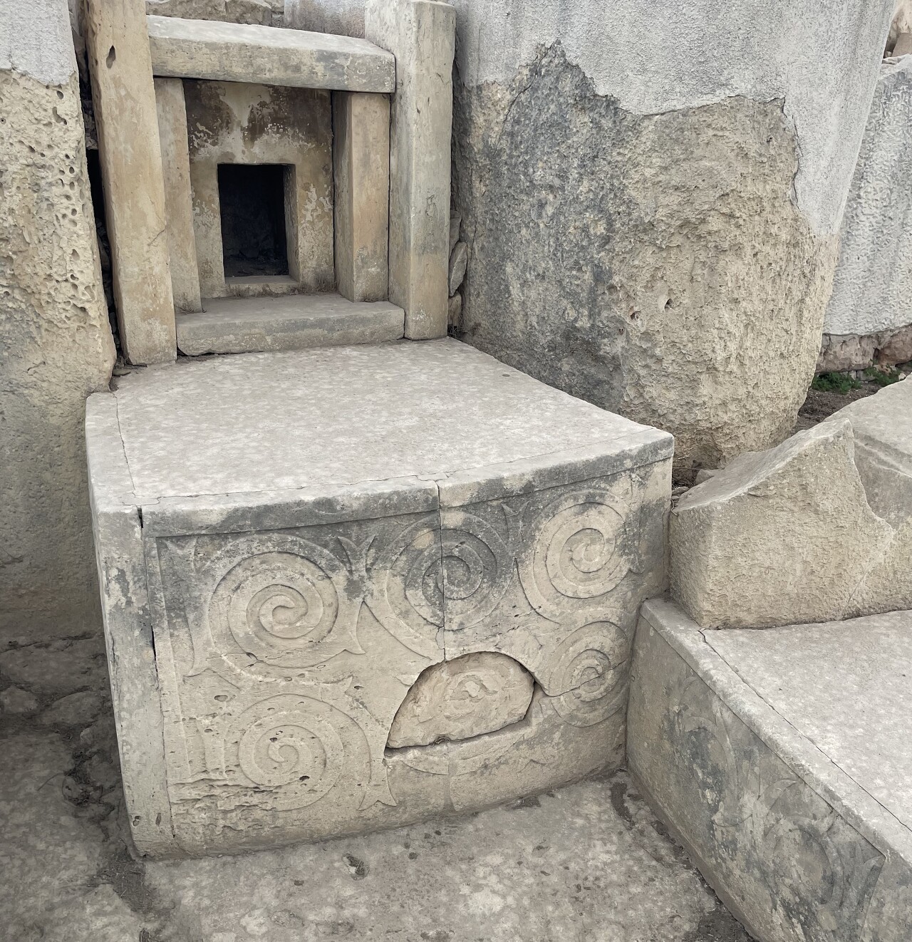 inner niche with its elaborately carved spirals the innermost part of Tarxien.