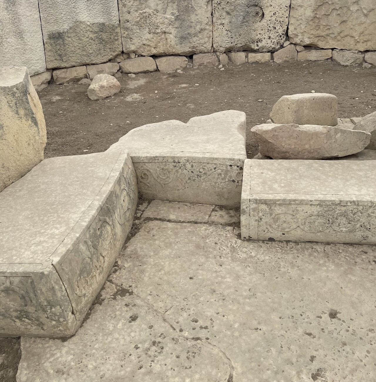 몰타, 타레시안 사원, 나선형 디자인의 돌.