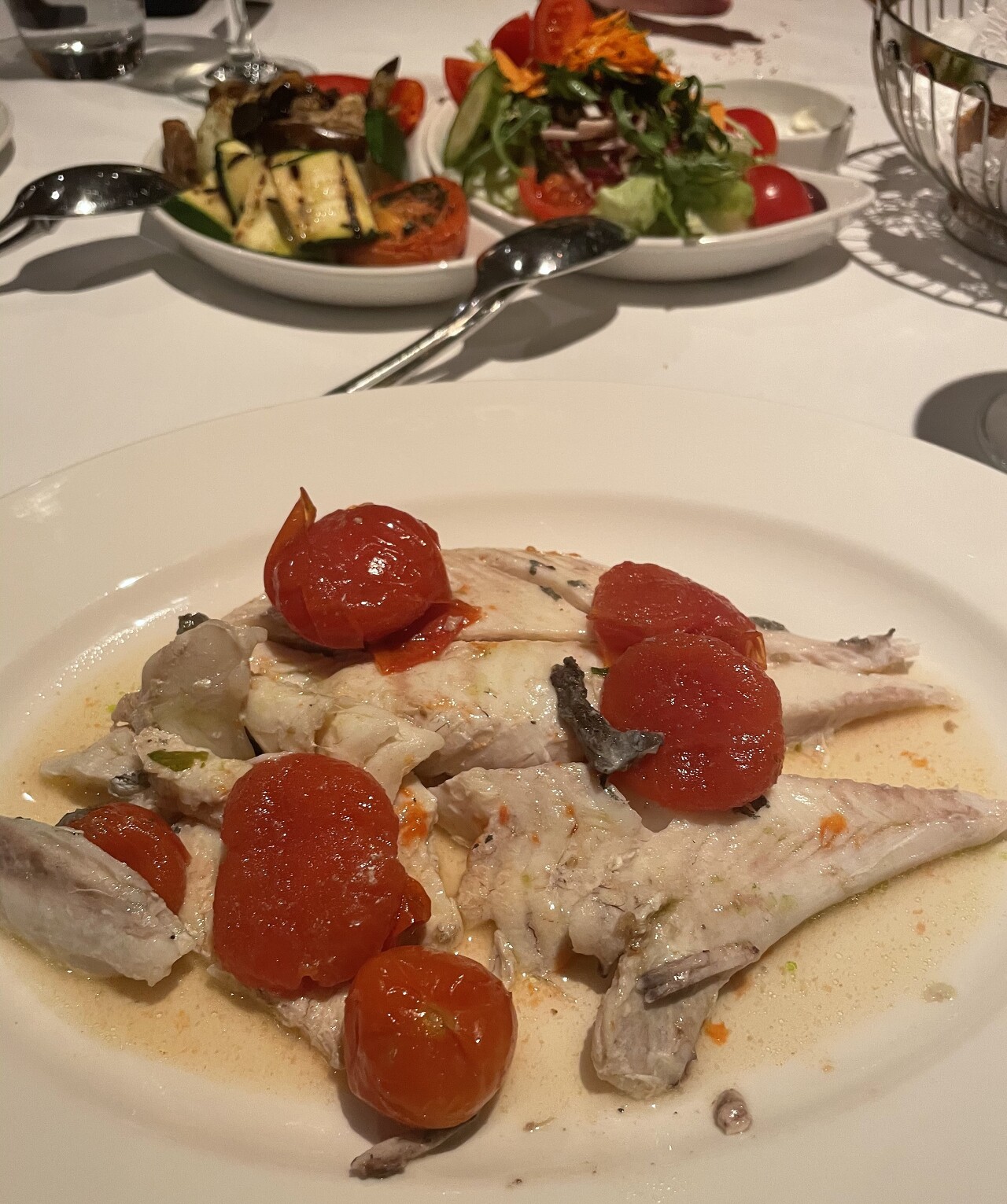 “すべてが完璧でした) とてもおいしいシーバス、おいしいワイン、素晴らしい雰囲気