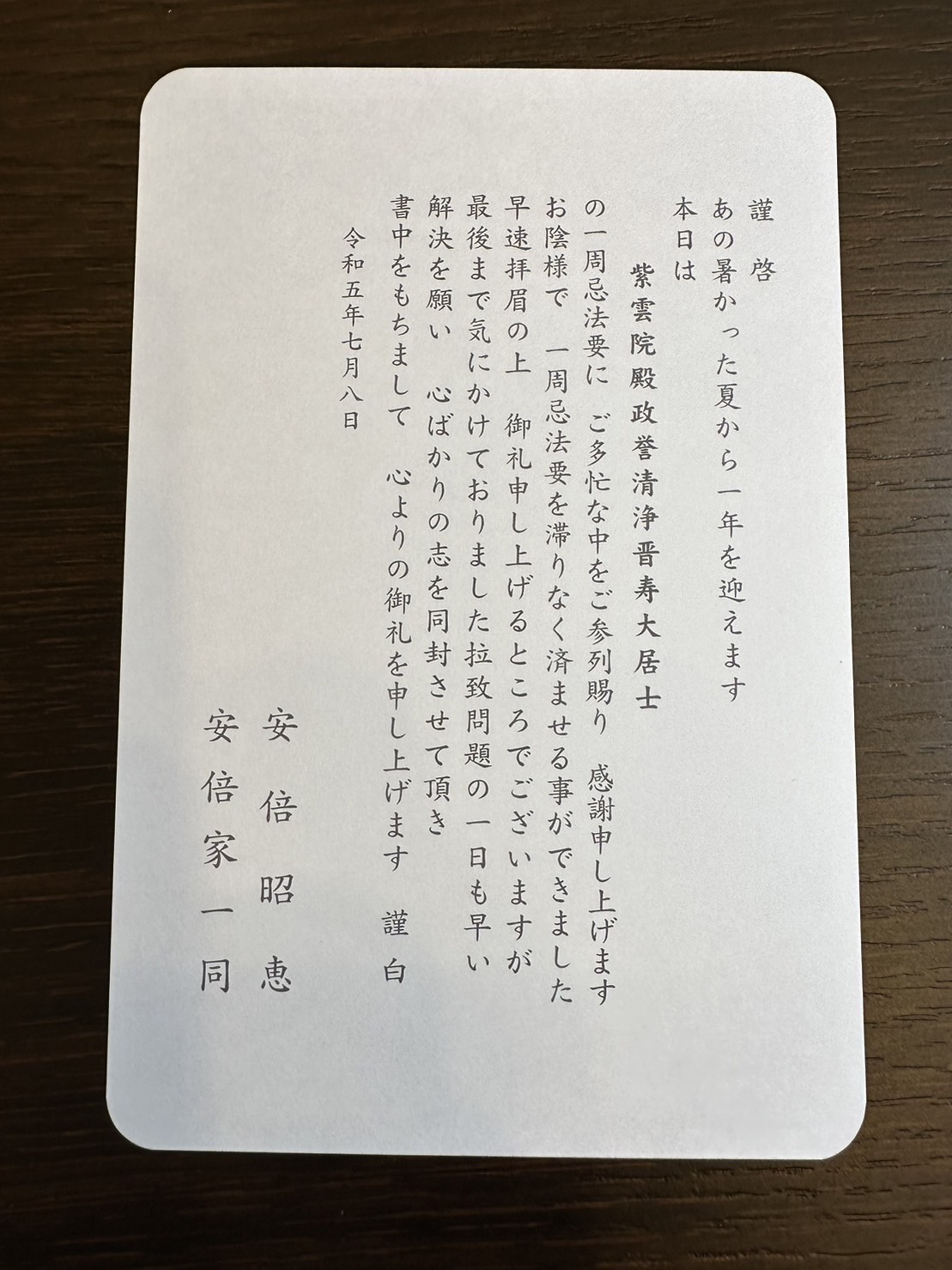 일본은 지난 7월 8일 아베 신조 총리 총격 기념 1주년 행사를 전국에서 추모행사를 진행했고 특히 행사에는 도쿄 도내에서 초대된 각계 인사들과 함께 치르진 날이다. 종교에 빠진 자신의 엄마에 대한 원한을 어이없게 아베 총리에게보복으로 한 어이없는 사건이었으며 일본 국민은 이 사건을 두고 내내 슬픔을 감추지 못했다.