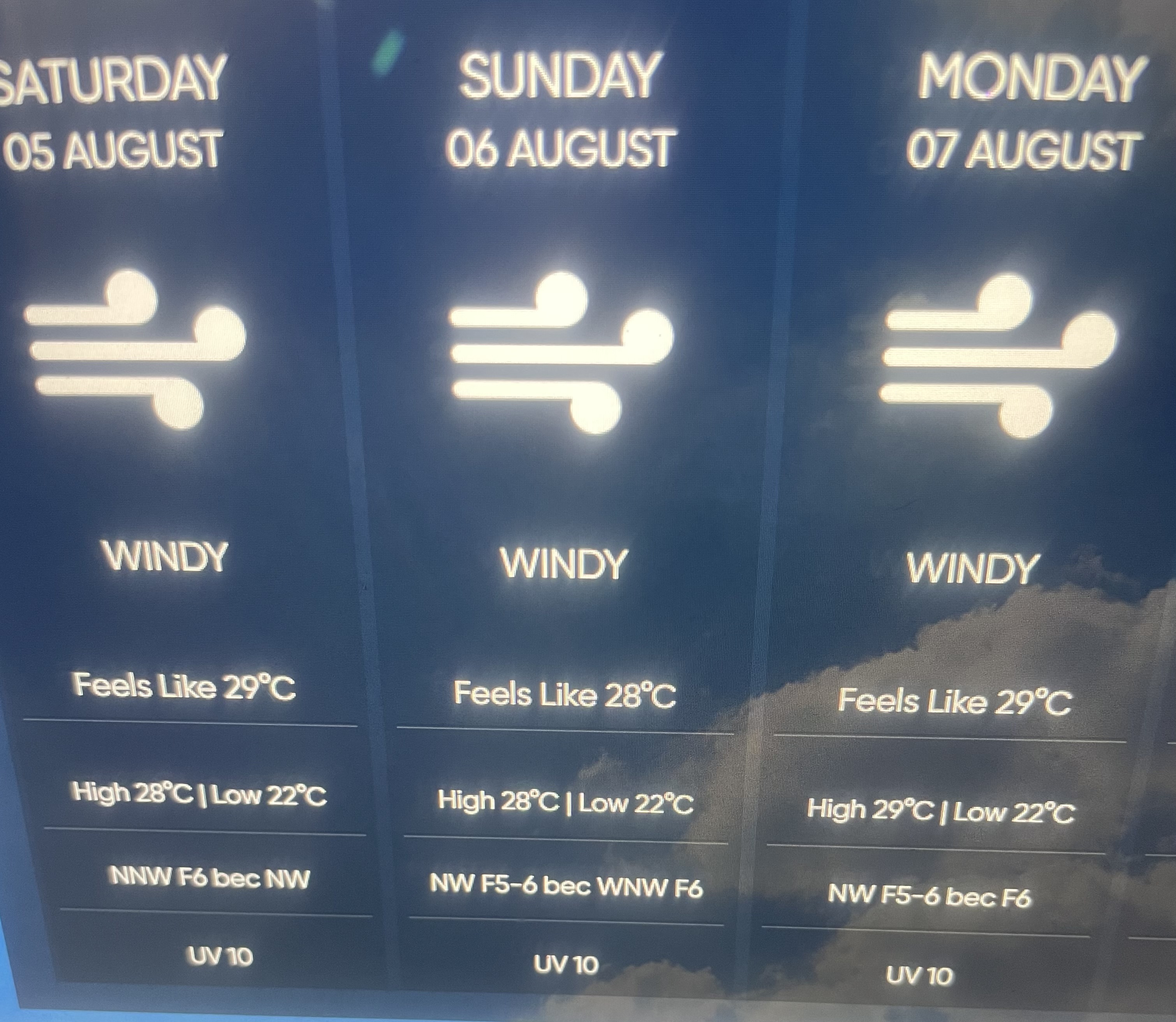 the wind blows at 29 degrees and it is very fresh.